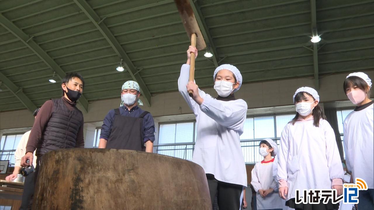 農林・水産箕輪北小5年生 収穫祭で餅つき