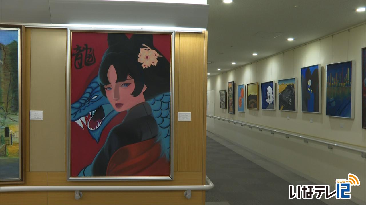 医療・福祉・奉仕中病に高遠高校美術部の作品展示