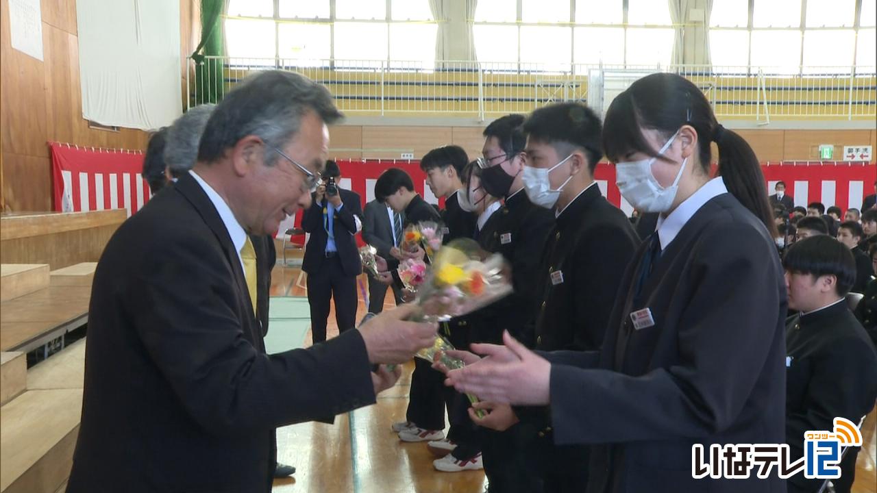 医療・福祉・奉仕庄内地区 箕輪中卒業生に花束