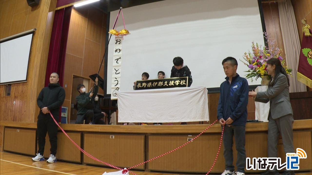 社会庄内地区 箕輪中卒業生に花束