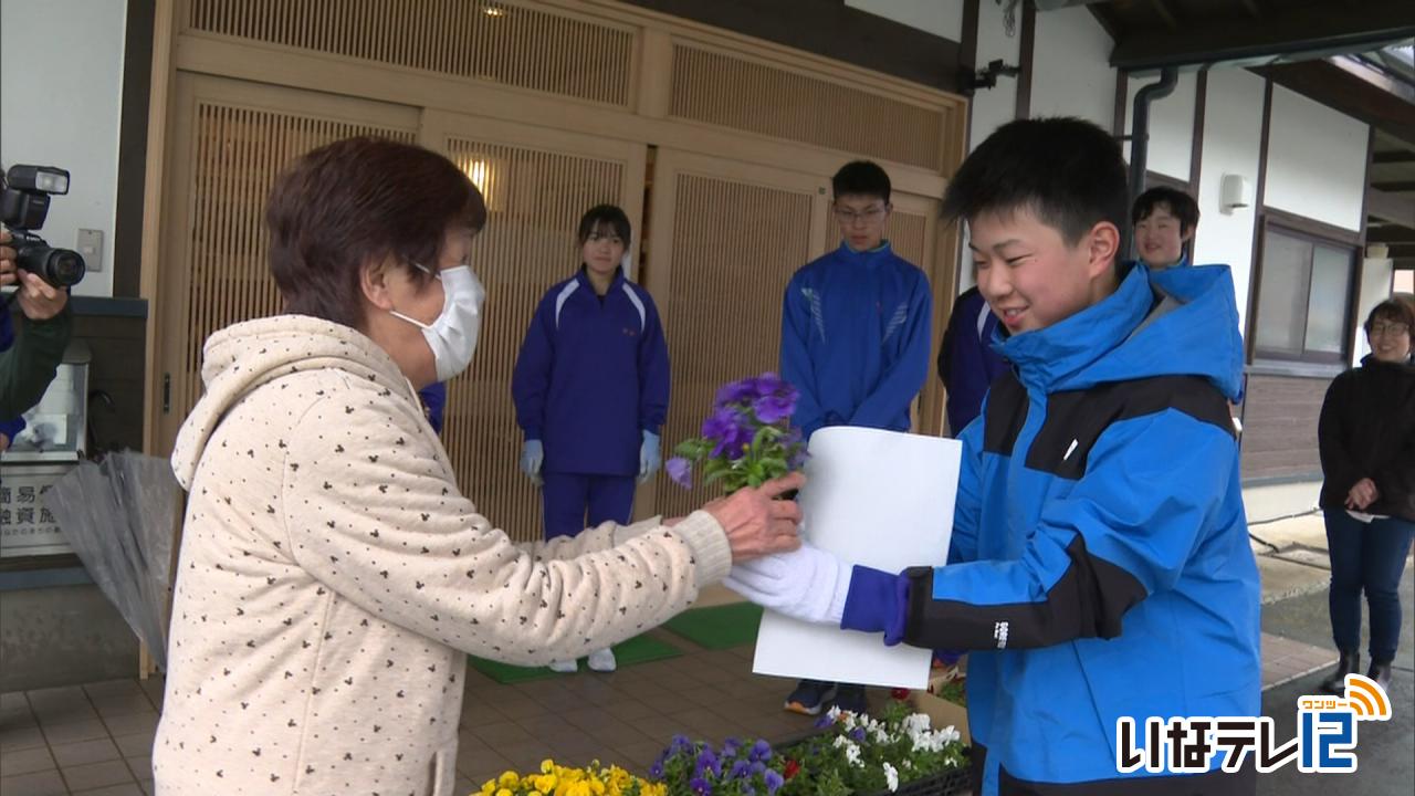 教育・文化・芸能長谷中学校の生徒がパンジーの苗を配布