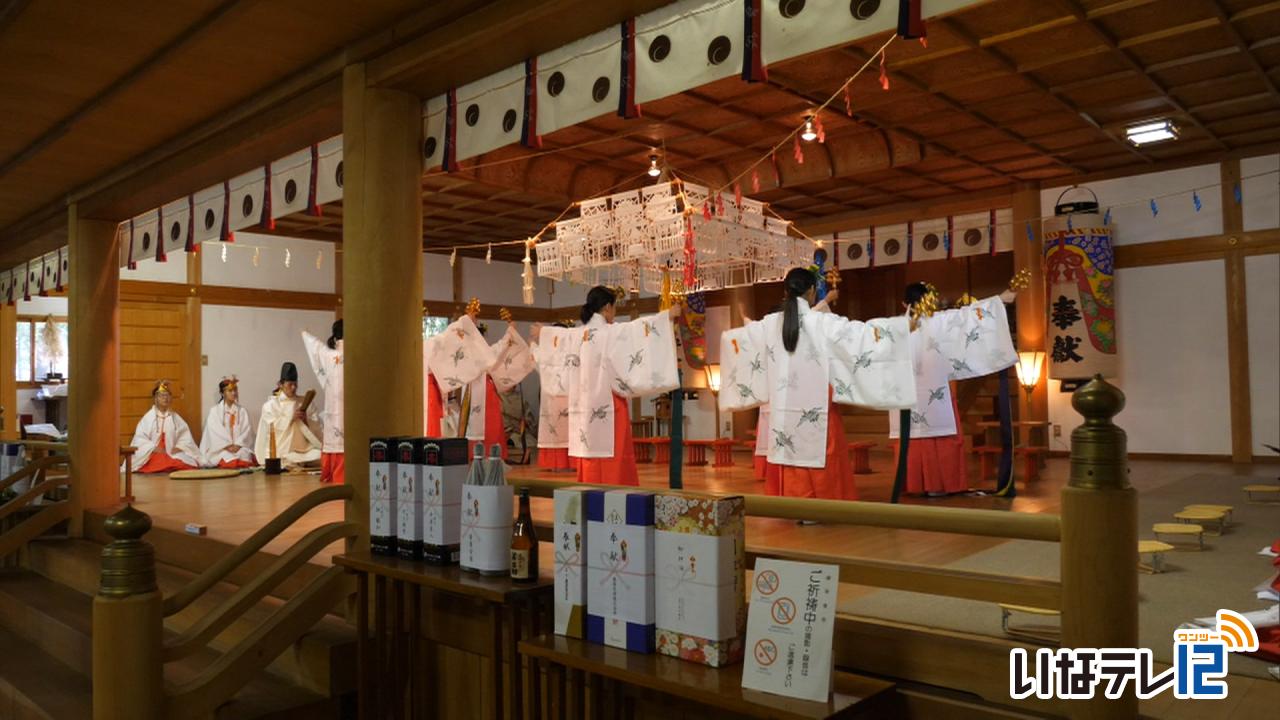 くらし・話題伊那東大社例大祭 小学生が浦安の舞奉納