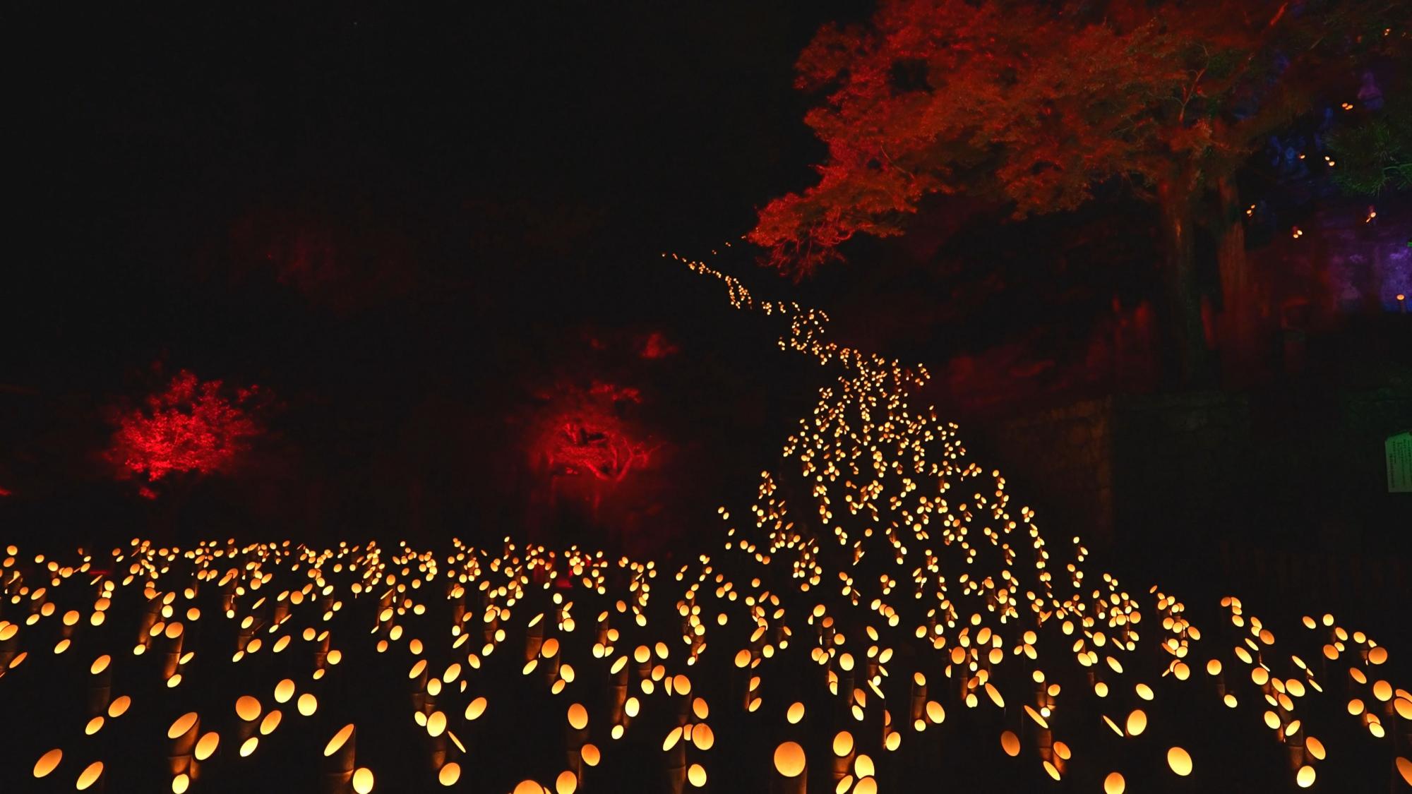 竹工芸で人間国宝となった生野祥雲斎氏の作品や、竹灯籠に明かりをともした光が美しい竹楽や竹宵と呼ばれる行事、日本