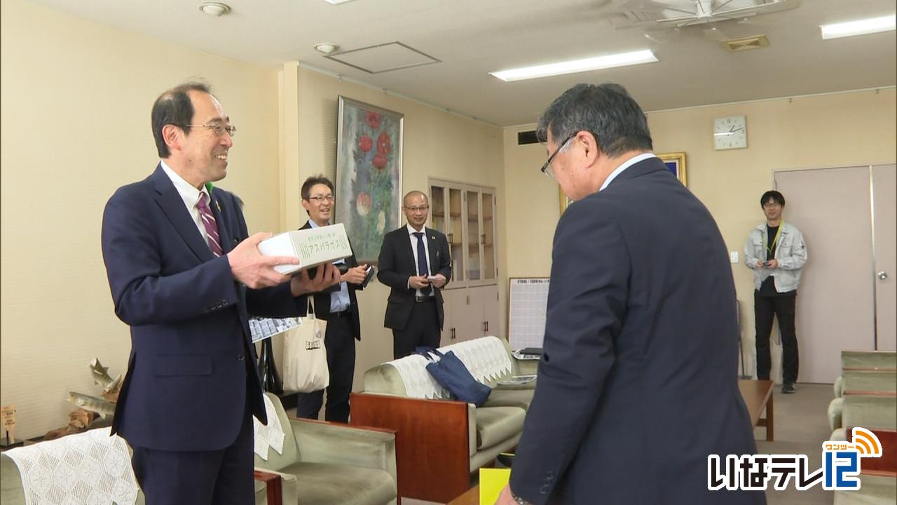 箕輪町功労者表彰受賞者 町に記念品贈る